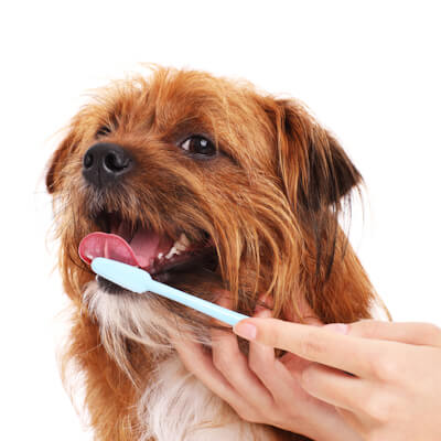Most pets accept brushing if approached in a gentle manner. Start when they are young, if you can. It’s quite easy, but even older pets will accept the process. Start slowly, using a soft cloth to wipe the teeth, front and back, in the same way you will eventually use the toothbrush. Do this twice daily and after about two weeks your dog will have become familiar with it all. Then take the toothbrush, soak it in warm water and start brushing twice daily for several days, only adding the toothpaste once your pet accepts this brushing.