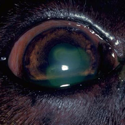 The pupils may appear dilated and increased eye shine may be evident. In some dogs cataracts may develop secondary to the PRA so that the eyes appear cloudy.